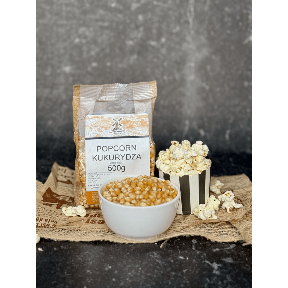 Historia tego rodzaju kukurydzy jest bardzo ciekawa, bowiem choć produkt wydaje się nowoczesny, to jest on znany ludzkości od tysięcy lat. W ziarnie znajduje się niewielka ilość wody, która po podgrzaniu paruje. Wówczas powstaje ciśnienie, które rozrywa łupiny, a na zewnątrz wydostaje się chrupiąca, skrobiowa masa. Jest kilka rodzajów popcornu - przeznaczony do uprażenia, taki jak nasz. Jest on zdecydowanie najlepszym wyborem. Istnieją również gotowe mieszanki popcornu, który przygotowuje się w mikrofali - taki z kolei łatwo spalić, jest to już również produkt przetworzony. Z kolei gotowy popcorn do kupienia w sklepie ma o wiele gorsze walory smakowe.