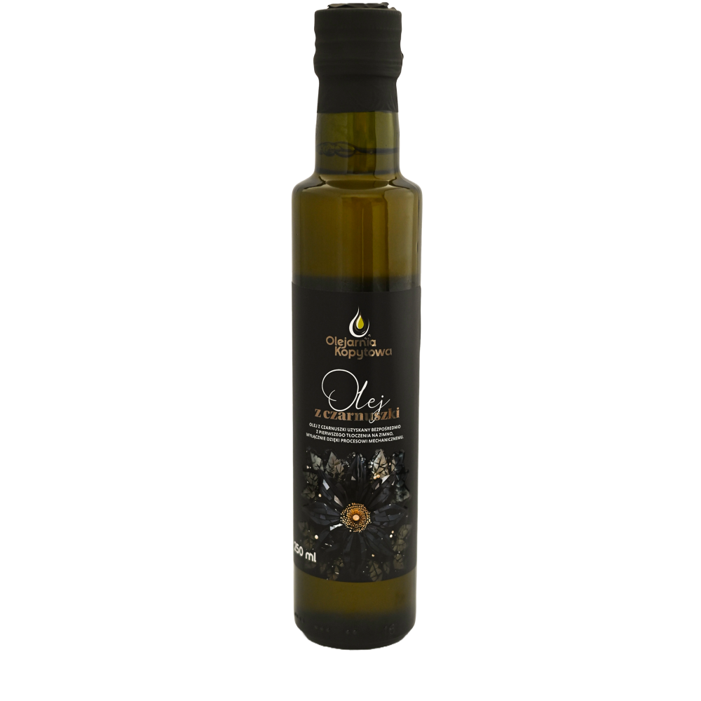 Olej z czarnuszki uzyskany bezpośrednio z pierwszego tłoczenia, wyłącznie za pomocą procesu mechanicznego. Wyprodukowano z wysokiej jakości nasion czarnuszki. Olej tłoczymy w młynie.
