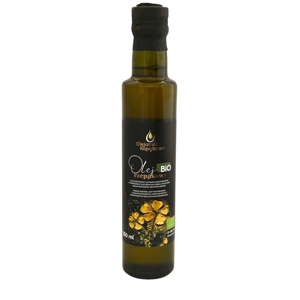 Ekologiczny olej rzepakowy uzyskany bezpośrednio z pierwszego tłoczenia, wyłącznie za pomocą procesu mechanicznego. Wyprodukowano z najwyższej jakości nasion rzepaku pochodzących z gospodarstwa ekologicznego. Uprawiany bez użycia środków chemicznych. W rolnictwie ekologicznym używanie nawozów chemicznych, pestycydów syntetycznych jest całkowicie zabronione. Warto również sprawdzić rzepak ekologiczny, dostępny w naszym sklepie. Olej tłoczymy w młynie.