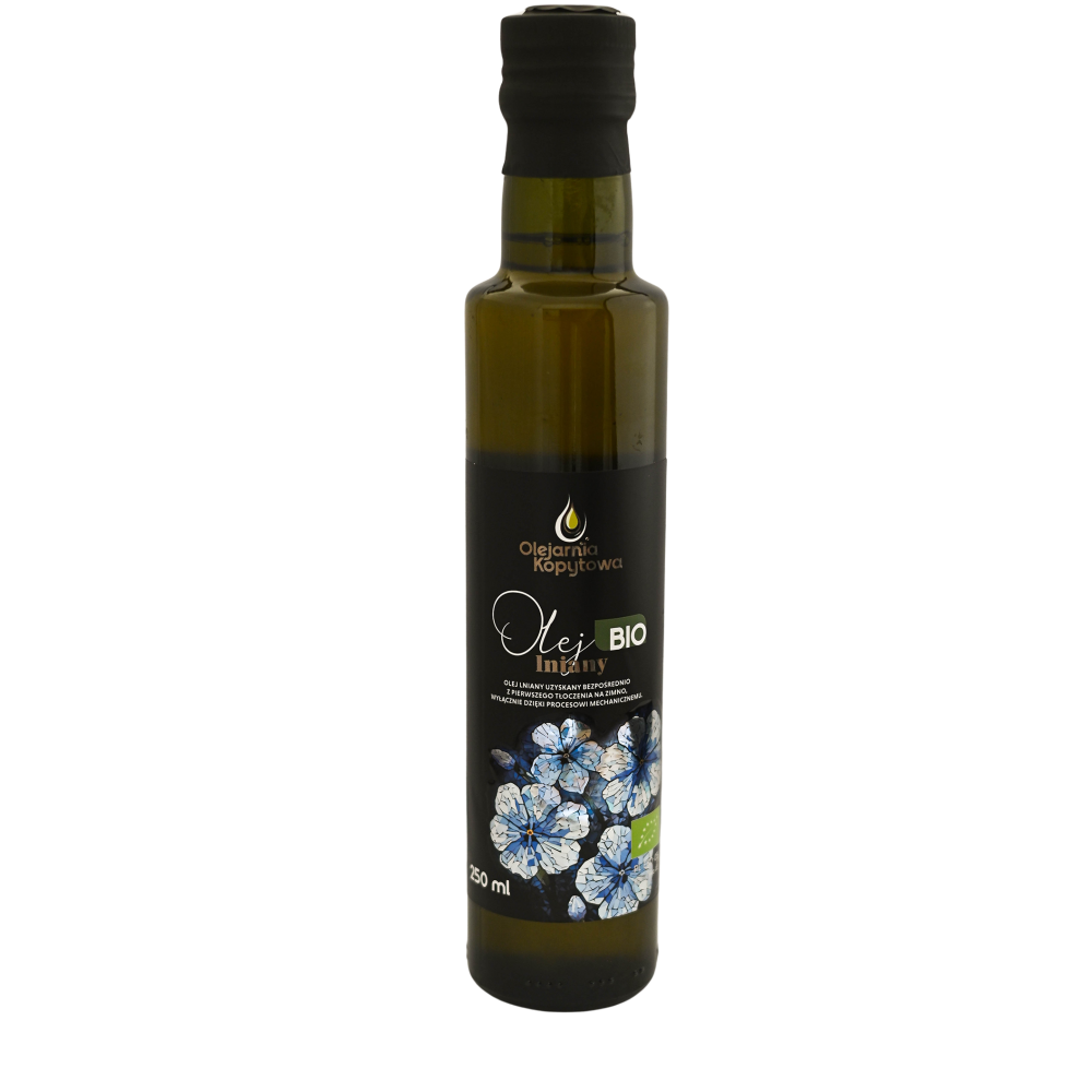 Ekologiczny olej lniany, cenny produkt z pierwszego tłoczenia, jest wytwarzany wyłącznie poprzez metody mechaniczne, bez udziału jakiejkolwiek obróbki chemicznej. Powstaje z najwyższej jakości nasion lnu, pochodzących z certyfikowanych upraw ekologicznych, gdzie zabronione jest stosowanie środków chemicznych, takich jak pestycydy czy nawozy sztuczne. Zachęcamy również do wypróbowania naszych innych produktów z lnu ekologicznego, dostępnych w ofercie naszego sklepu. Tłoczenie oleju odbywa się w tradycyjnym, rzemieślniczym młynie.