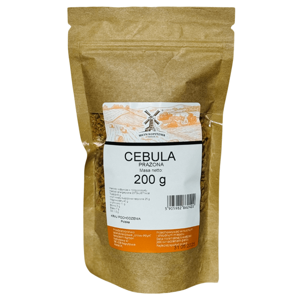 - Produkt naturalny: Nasza cebulka prażona to 100% naturalny produkt, bez sztucznych dodatków, konserwantów i wzmacniaczy smaku.