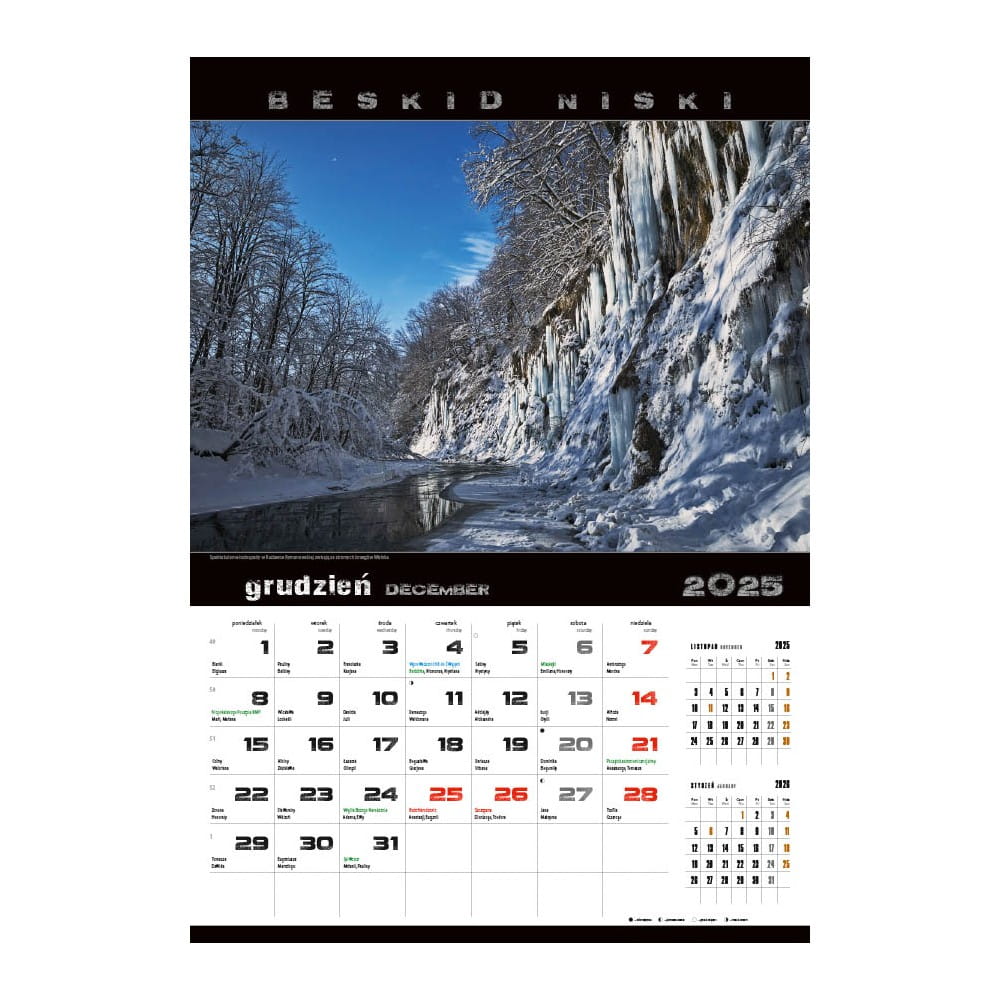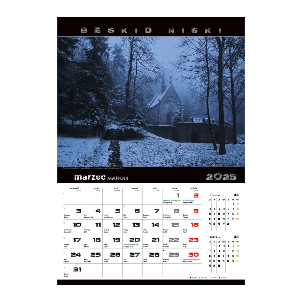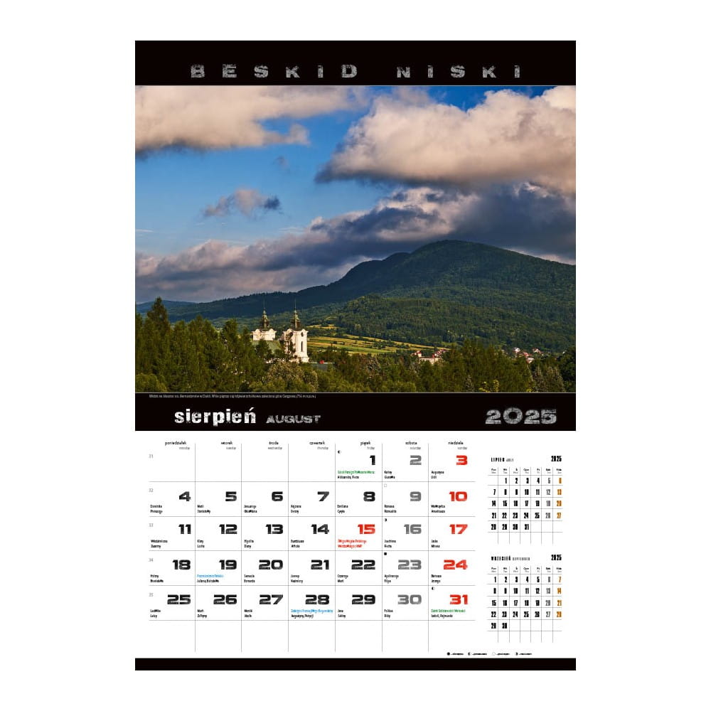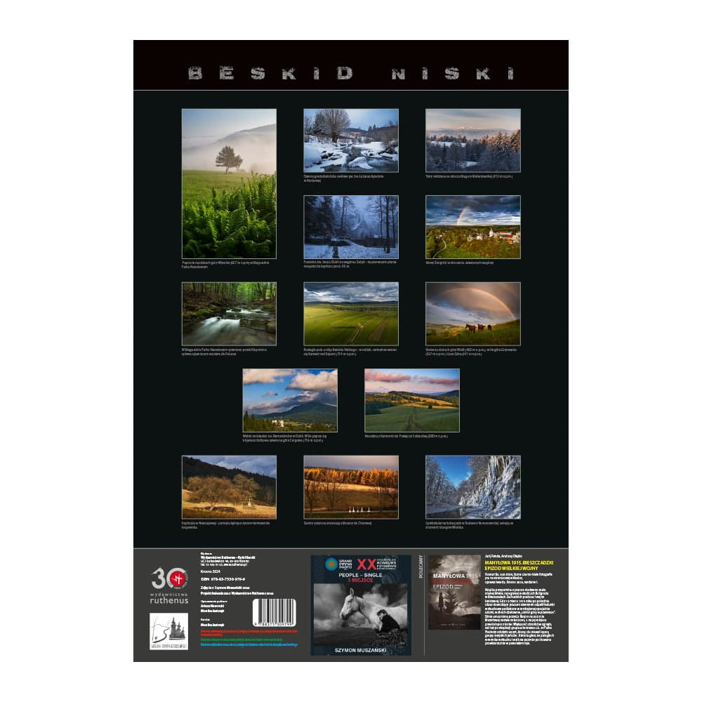Kalendarz ze zdjęciami Beskidu Niskiego, krajobrazów i atrakcji, wydrukowany na papierze kredowym, zapewniającym wysoką jakość druku. Edycja limitowana.